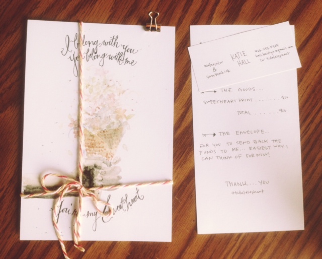 1. I received this super amazing print from an incredibly creative friend of mine named Katie Hall (which coincidentally was my old name before a became a Lemster). This girl is so talented and you should all go buy her art! She doesn’t have a website but you can follow her on instagram @tidalelephant…check it out!